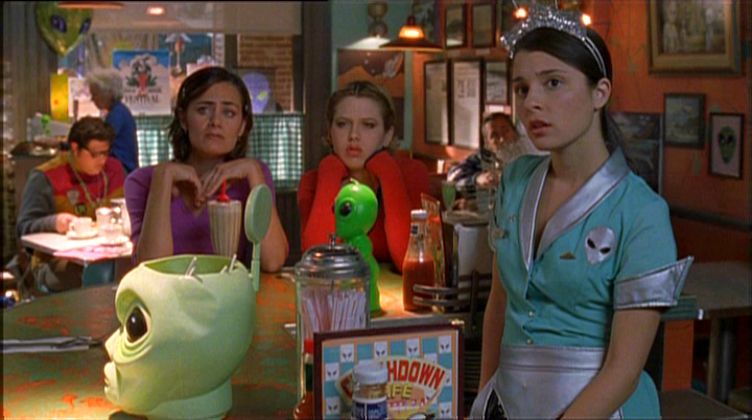Here is a diner that has built its entire brand around the idea of alien visitors. Its menu items have names like the “Alien Blast” and the “Men in Blackberry Pie.” The staff wear little antennae. The walls are covered in little green men. The whole place is a loving, commercial embrace of the very thing Max, Michael, and Isabel are desperately trying to hide.
